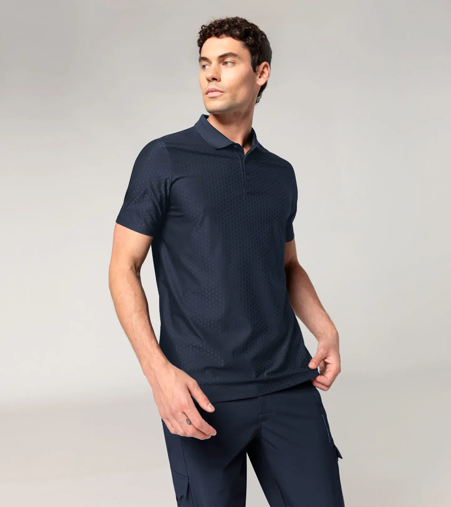 Stylish polo shirt from Porsche Design in an iconic hexagon look. Regular fit.